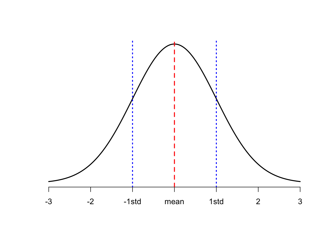 For a measured variable the area under the curve from one value to another measures the relative proportion of the population having the outcome value in that range.