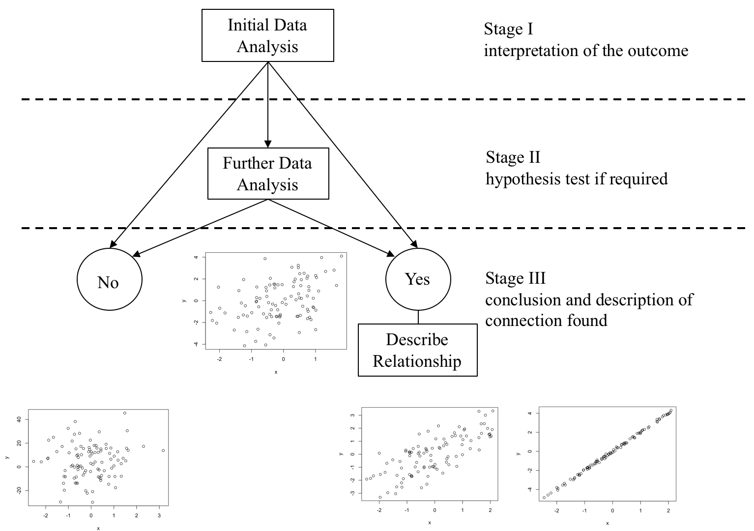 The first step is to have a clear idea of what is meant by a connection between the response variable and the explanatory variable. This will provide a framework for defining a Data-Analysis process to explore the connection between the two variables, and will utilise the ideas previously developed.