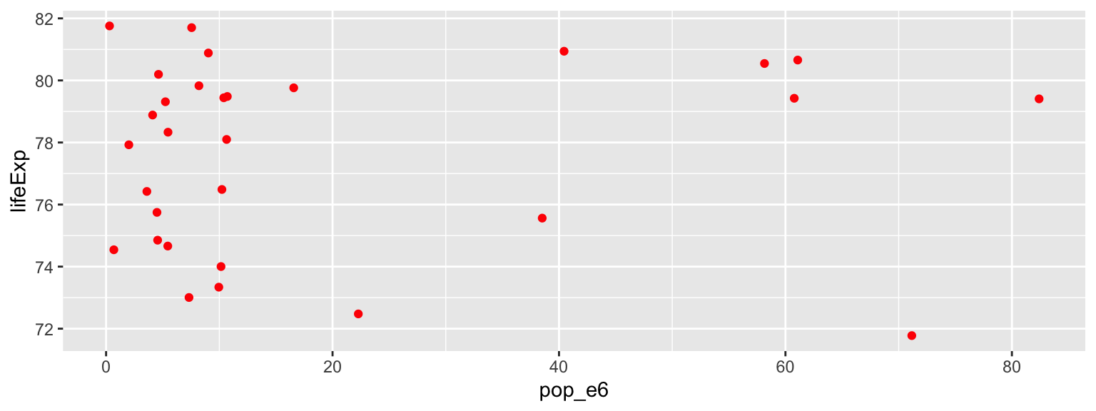 ggplot(gapminder_pipe, aes(x = pop_e6, y = lifeExp)) +