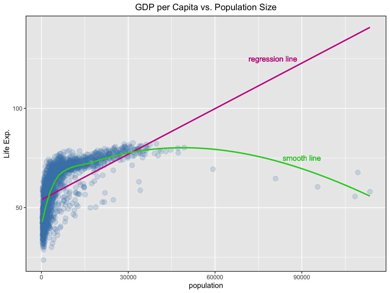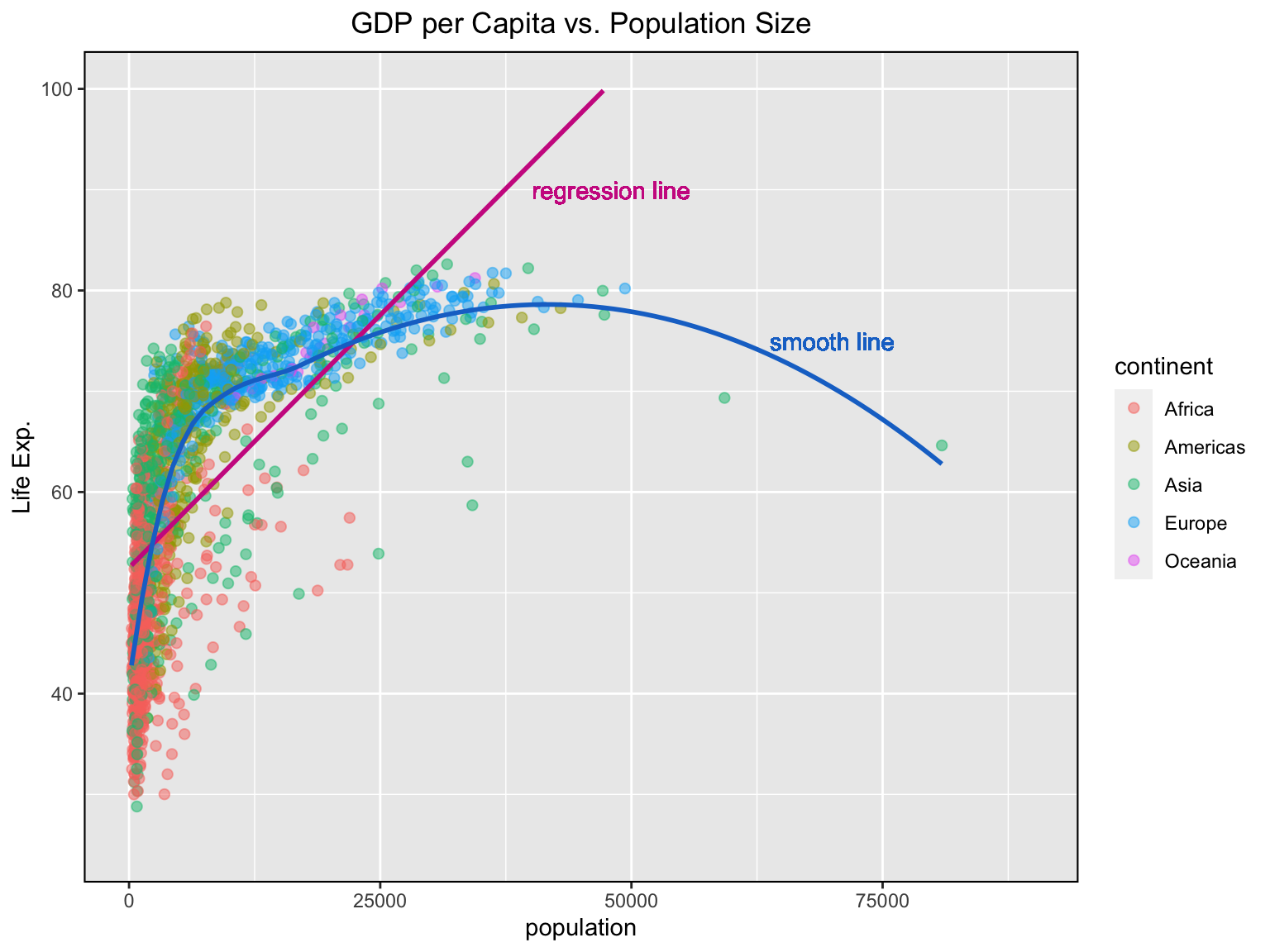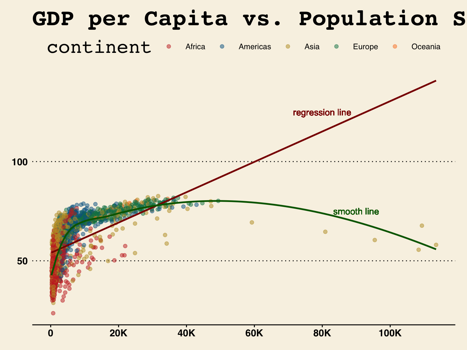 geom_text(x = 90000, y = 75, label = "smooth line", col = "darkgreen") +