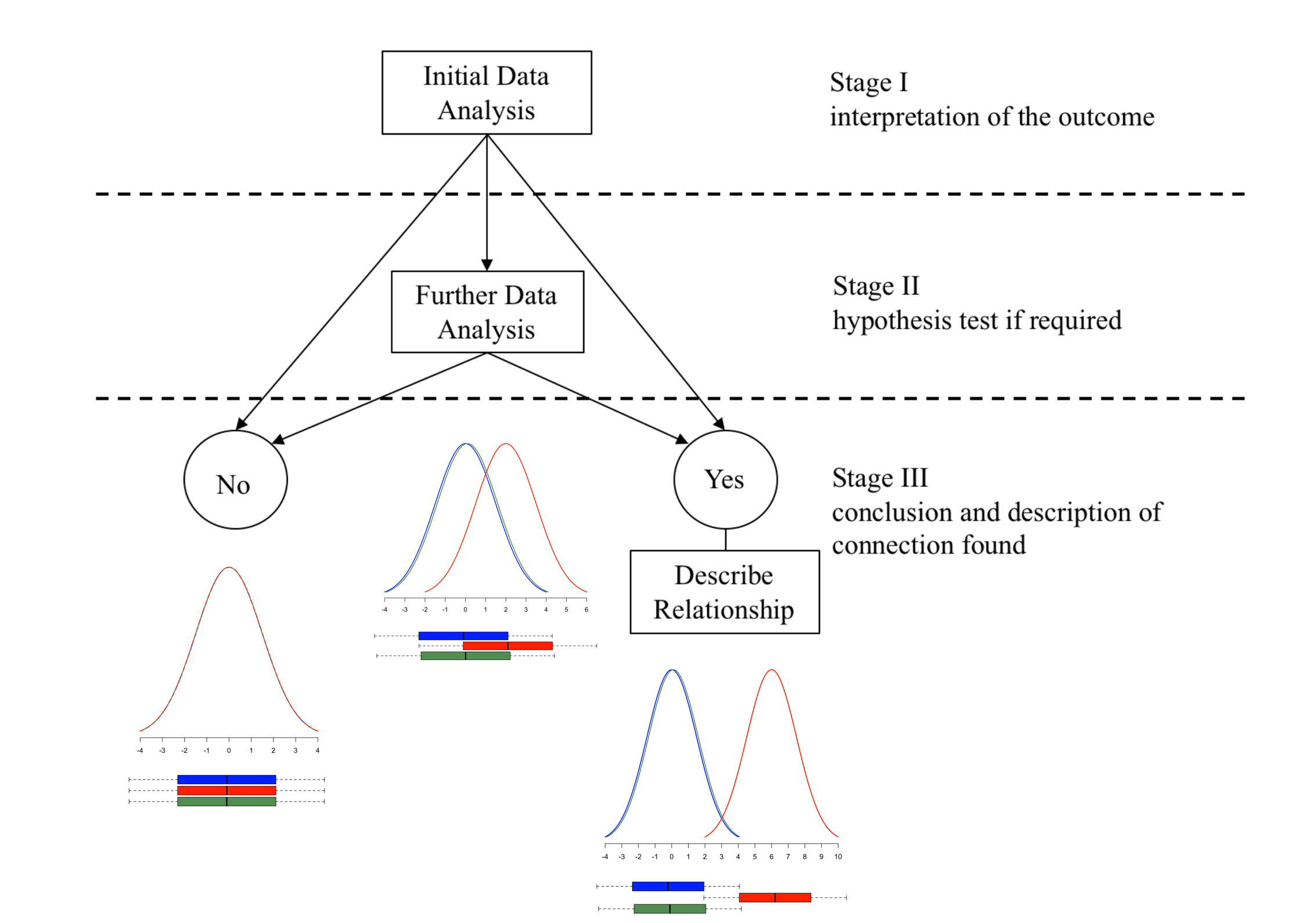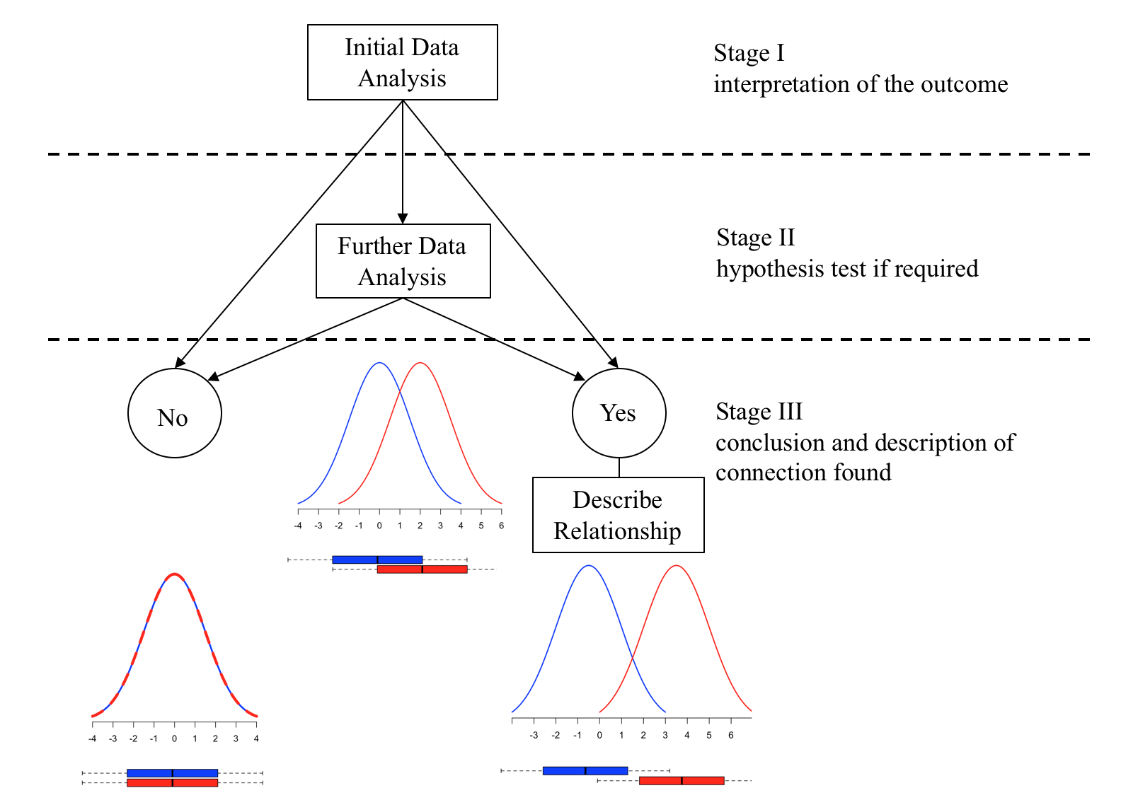 To complete the data analysis the analyst needs to know how to perform the following three stages: