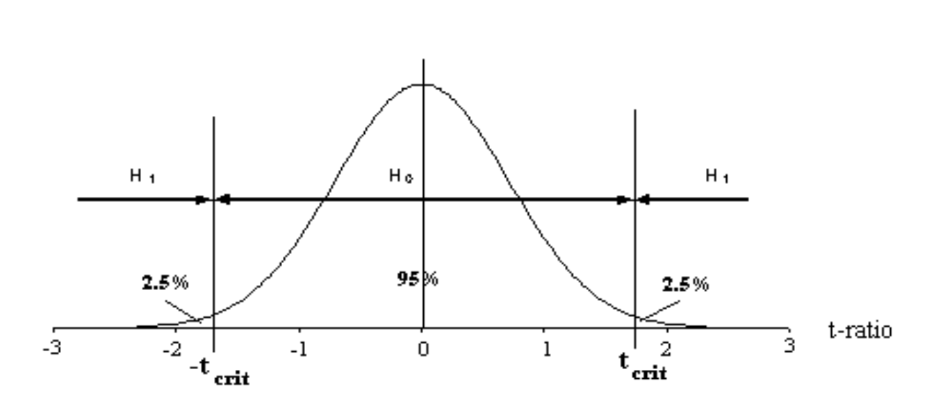If the value of F_calc is between 0 and F_crit then conclude that **there is no link \((0 < F_{calc} < F_{crit})\)