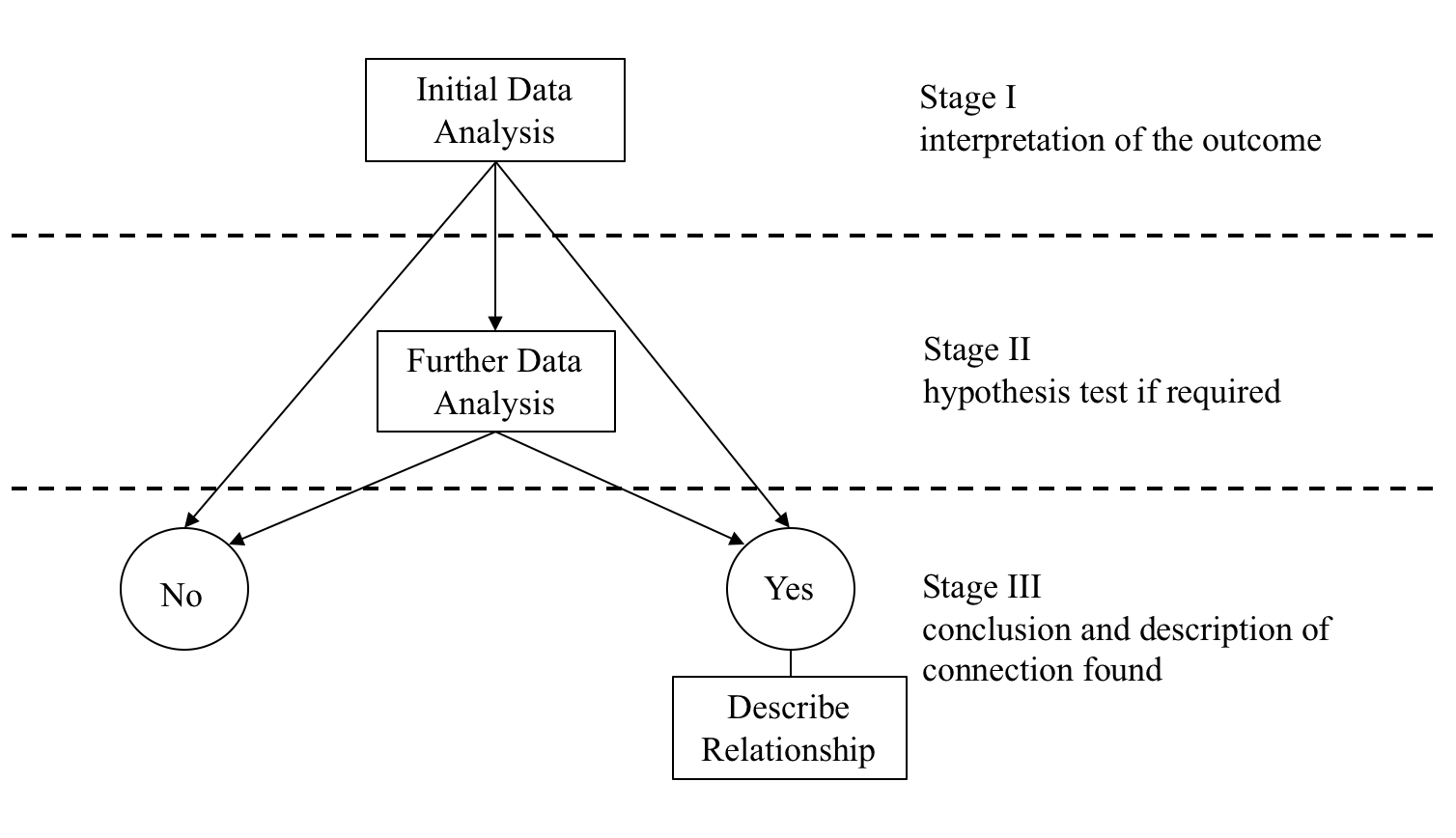 There is no evidence of a relationship, labelled as the ‘No’ outcome in the diagram above, in which case the analysis is finished.