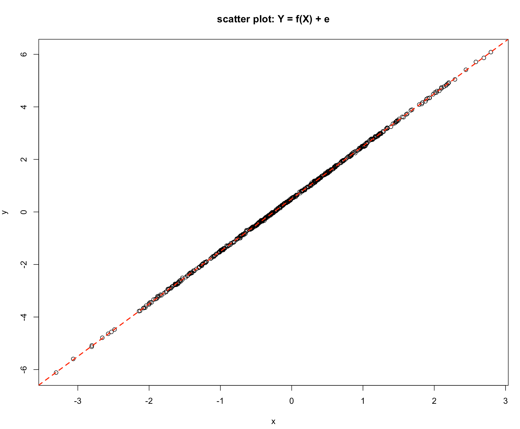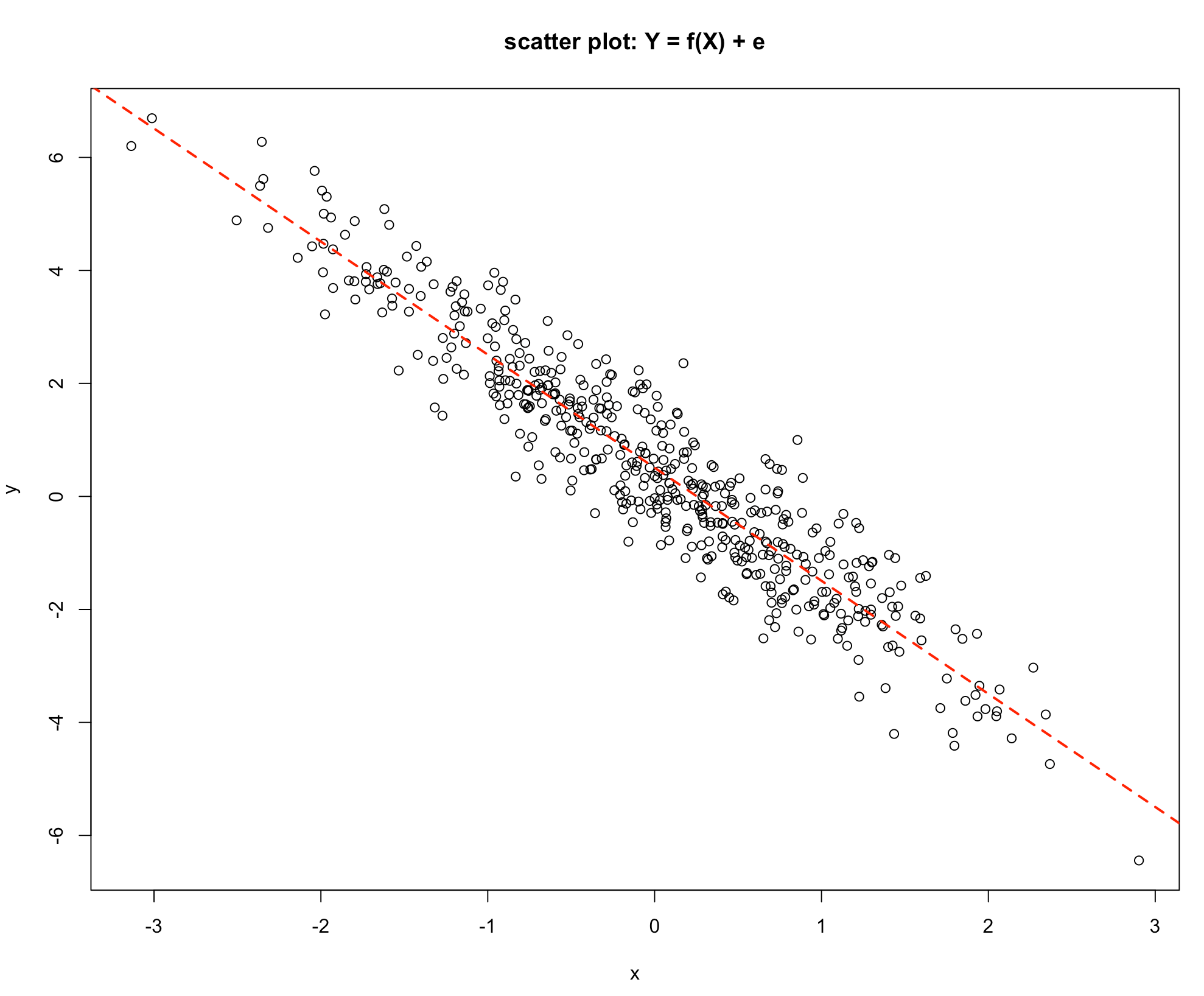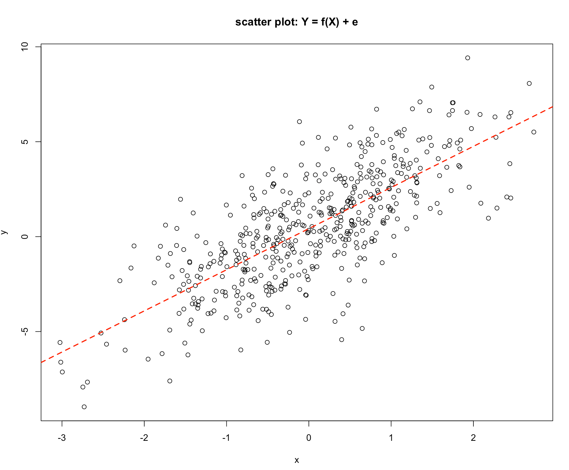 abline(lm(y~x), lwd = 2, lty = 2, col = 2)