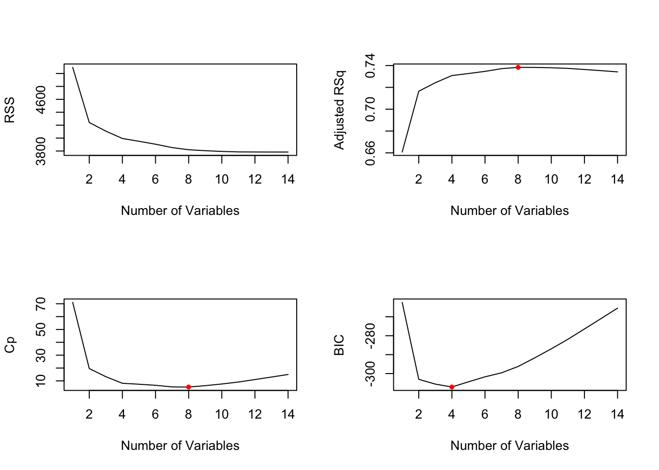 tuneGrid = data.frame(nvmax = 1:14),